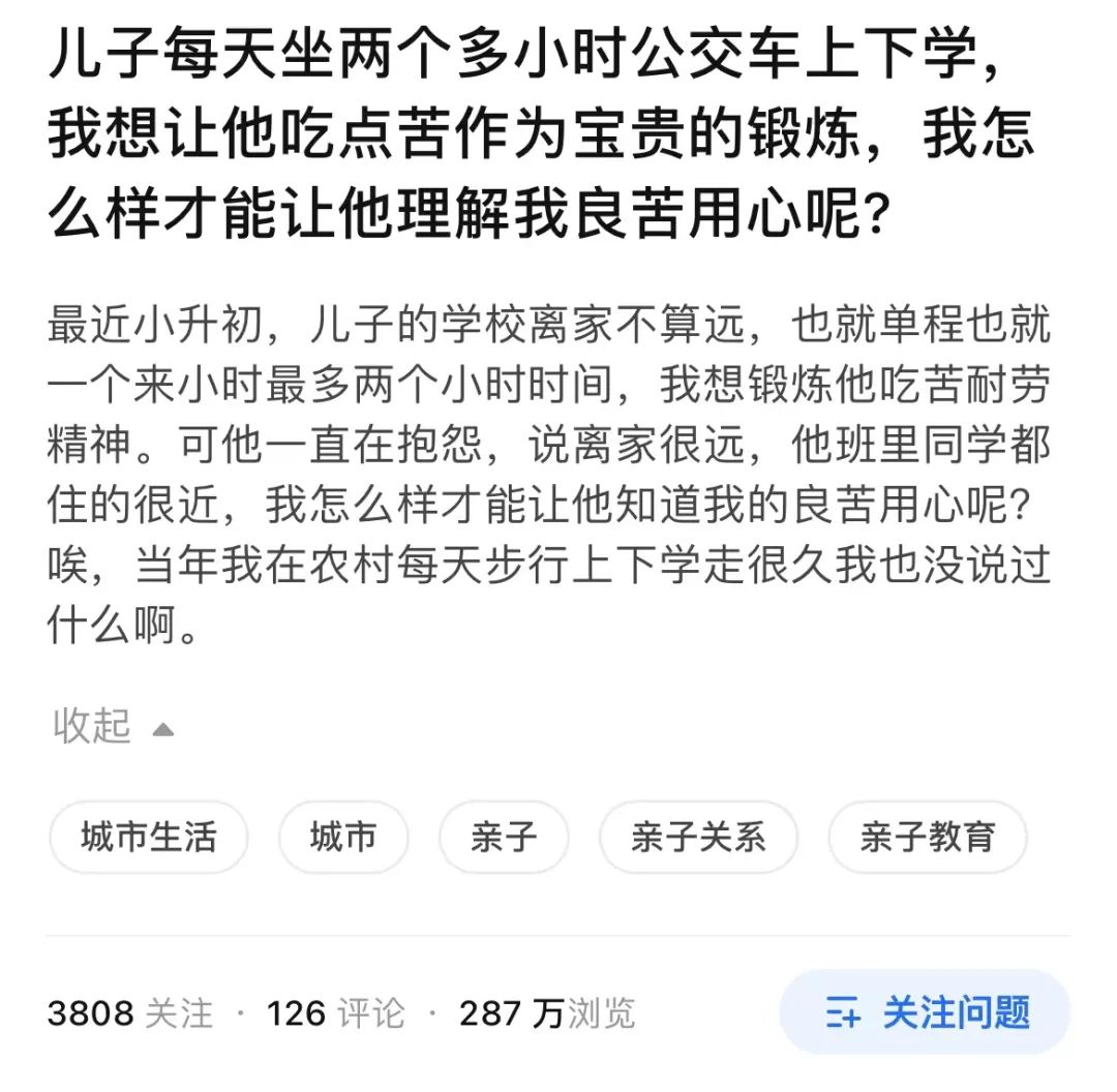 而这在家长的嘴里则变成了“不算远”、“想锻炼他吃苦耐劳精神”。