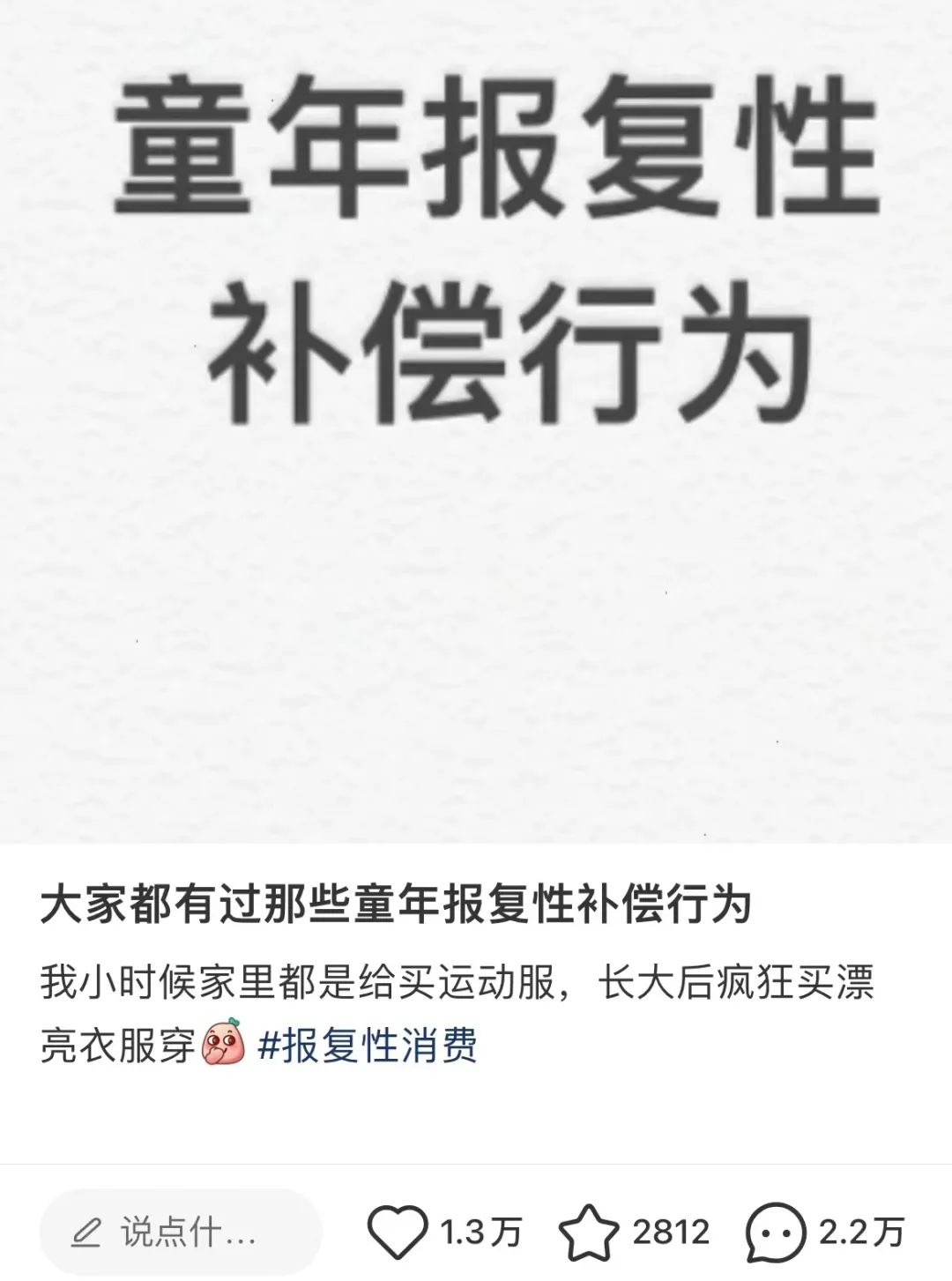 前几天,就有这样一个话题上了热搜:“大家都有过哪些童年报复性补偿行为?”
