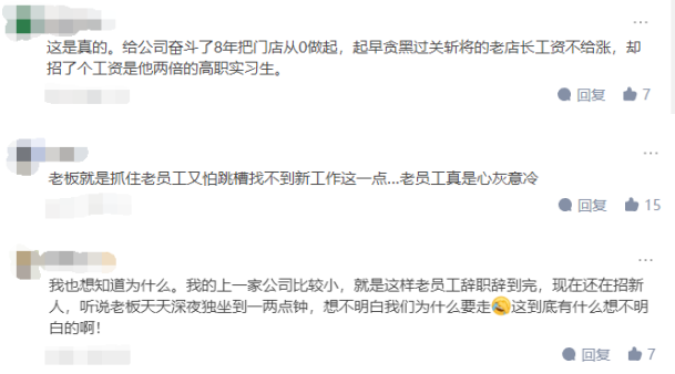 这是真的。给公司奋斗了8年把门店从0做起,起早贪黑过关斩将的老店长工资不给涨,却招了个工资是他两倍的高职实习生。
