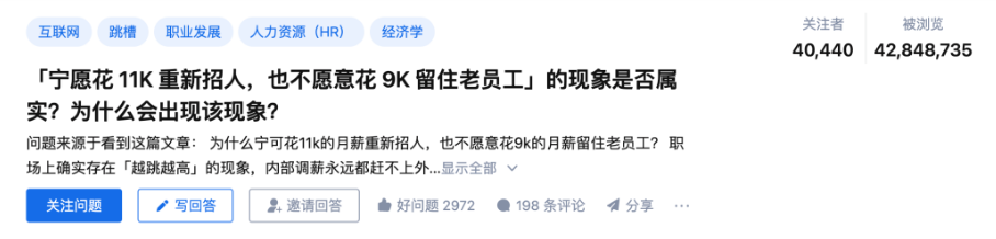 “为何公司愿意用11k招聘新员工,却不愿意用9k的月薪留住老员工?”