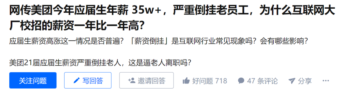 例如去年美团应届生的平均年薪超过35万,相比工作8年的老员工,还要高出2万左右。