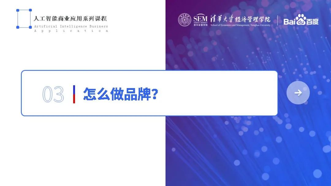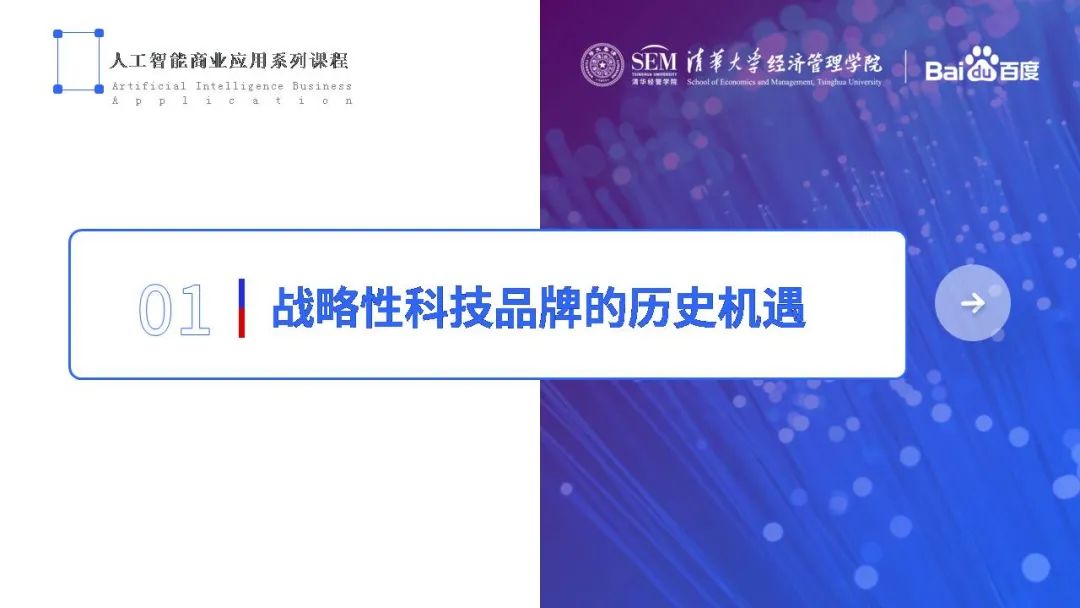 在2022年9月清华大学经济管理学院的人工智能商业应用课程中,百度集团副总裁袁佛玉以《打造战略性科技品牌》为题,给学生们上了第一节课。课程主要聚焦在三个方面: