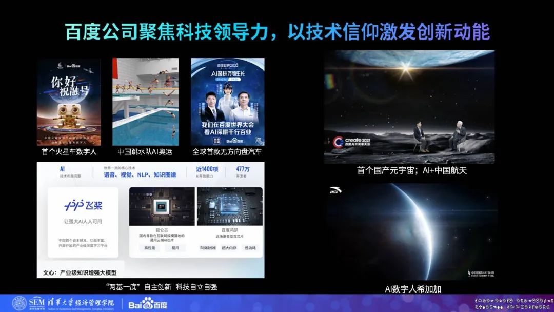 在品牌沟通上,我们跟很多新的事物、新的事件有关系。比如,我们跟中国航天合作了第一个火星车的数字人,让中国航天离普通用户更近。去年奥运会,中国跳水队的教练和整个团队都采用了百度的智能方案,帮助他们把运动员每次跳水的过程都数字化,每个动作到底是在哪个环节出问题了,都看得非常清楚。去年,百度发布了首个国产元宇宙,我们 CEO 李彦宏先生和中国航天的欧阳自远院士在元宇宙里进行了一次对话。