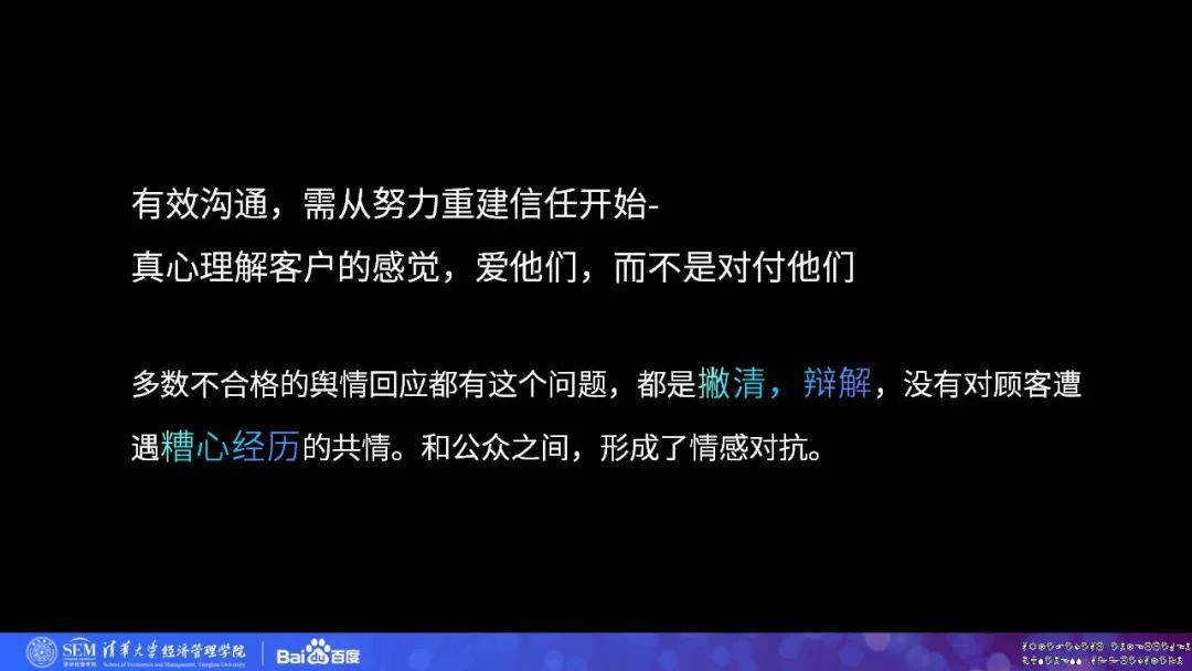 所以有效沟通,最重要的是努力重建信任。要真心地理解你的用户,受众的感受,而不是对付他们。我们看到,多数不合格的舆情回应都有这个问题,就是撇清、辩解,没有对顾客遭遇糟心经历的共情。和公众之间,形成了情感对抗。