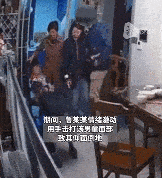 从图片可以看出,正当鲁某某批评小航的时候,突然伸手用力地掴了孩子一耳光,坐在椅子上的小航瞬间仰面倒地,其力道可想而知。