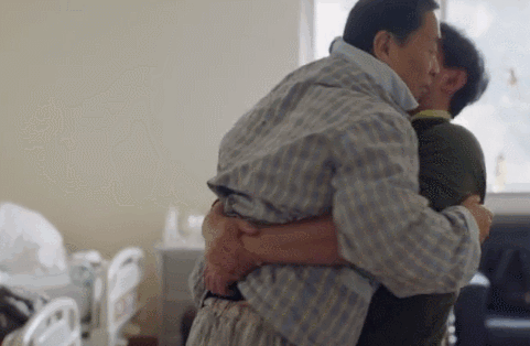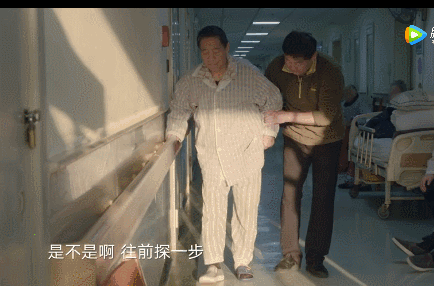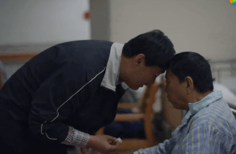 老付头总念叨年轻时工作上的事儿,付刚就帮他一起回忆;进行走路训练时,付刚总是耐心地搀着老付头数步子;老付头总想回家,付刚就像对小孩一样哄着他,和他做游戏逗他开心。