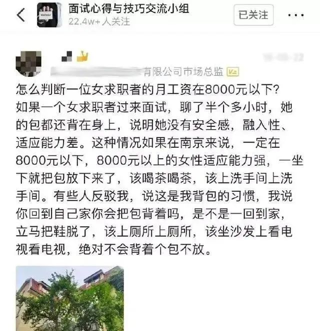 “如果一个女求职者过来面试,聊了半个多小时,她的包还背在身上,说明她没有安全感,融入性、适应能力差。