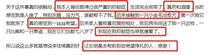 现在的我养了一只边牧、一只比熊和一只泰迪,抑郁症也早就康复了。”