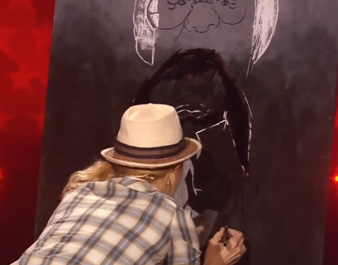 一位画家上台,在黑板上娴熟地画出人物头像,很快就有人认出她画的是评委格雷斯。