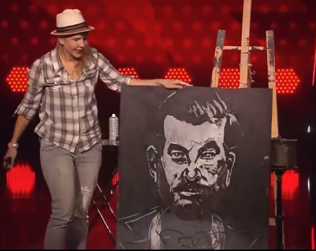 在场的评委和观众当场傻眼了,全都站立起来为她的创意和画技而鼓掌。