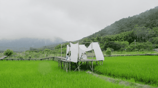 有的卧室直接搭边稻田,伴着繁星入眠,耳边是蛙声一片。