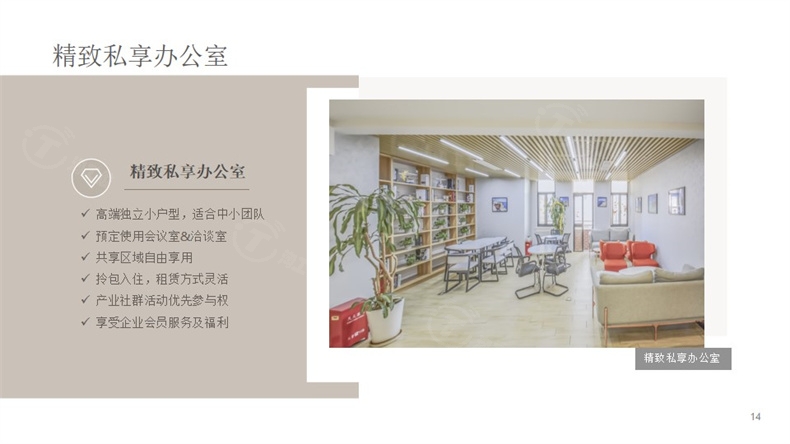 以小团队为主要服务对象,提供以配备完善、即时入驻的办公空间为主体,行政管理、企业增值和成长陪伴服务为配套的一站式办公解决方案,助力企业更灵活、高效地开展商业活动