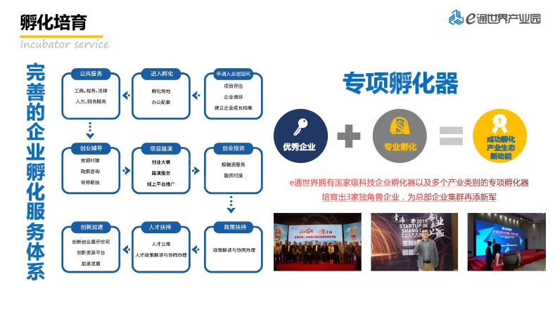 我们以每一个创业者的各种境遇出发,建成从公共苗圃—创业孵化—创业加速器的创业全链条,包括工商注册、法律财会、人力资源、市场推广、项目复活等一揽子创业服务,旨在帮助创业者顺利启动与成长,实现创业梦。以“协助中小团队成功”为使命,在此基础之上进一步以“科技赋能创业服务”的发展宗旨,用科技的力量改变创业中几乎所有的环节,使用物联网构建智能实体创业空间、使用互联网构建虚拟社群创业空间