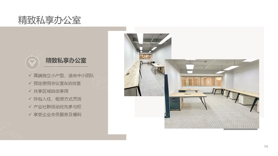 我们拥有专业客服团队为客户提供贴心周到的服务与支持。高品质家具、基础设施和超前的设计理念为企业营造良好的办公环境。强大的资源平台汇聚大量知名企业和一流专业人才,链接、助力其成功。