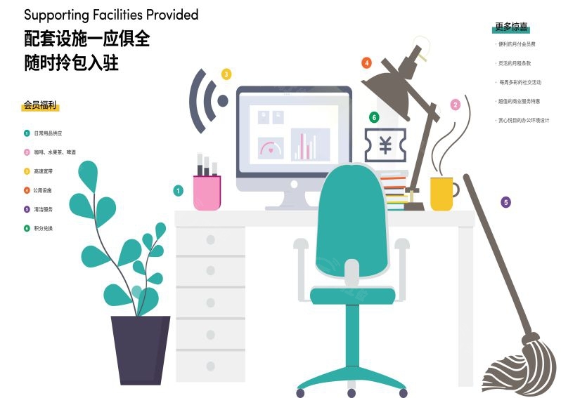 租金包含:前台服务、物管费、家具、水电、咖啡茶水、日常清洁、网络配置、打印复印、会议室