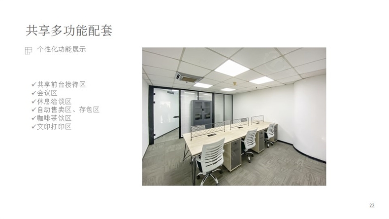 租金包含:前台服务、物管费、家具、水电、咖啡茶水、日常清洁、网络配置、打印复印、会议室