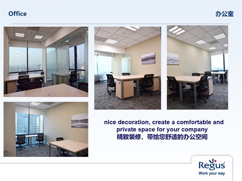 雷格斯(LSE:RGU)是全球领先的工作场所创新解决方案供应商。提供全配办公室,虚拟办公室,专业会议室,商务贵宾室和最大的视频会议演播室网络,并配有非常专业的秘书团队,这使得雷格斯商务中心成为设立新办公地点的快速和经济的解决方案。我们服务理念的关键词是灵活性:租期灵活、租赁面积灵活。雷格斯IWG集团在中国包括北京、上海、广州、深圳、成都、重庆、长沙、大连、杭州、昆明、南京、天津、西安、武汉和台北等近三十个城市,设立了超过140家商务中心。