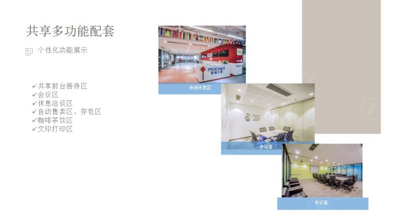 租金包含:前台服务、物管费、家具、水电、咖啡茶水、日常清洁、网络配置、打印复印、会议室