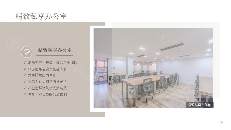 以小团队为主要服务对象,提供以配备完善、即时入驻的办公空间为主体,行政管理、企业增值和成长陪伴服务为配套的一站式办公解决方案,助力企业更灵活、高效地开展商业活动