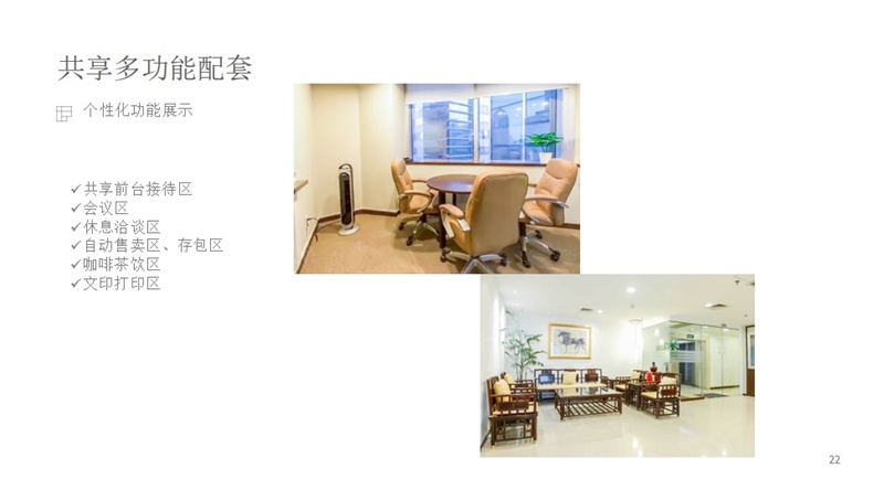 租金包含:前台服务、物管费、家具、水电、咖啡茶水、日常清洁、网络配置、打印复印、会议室