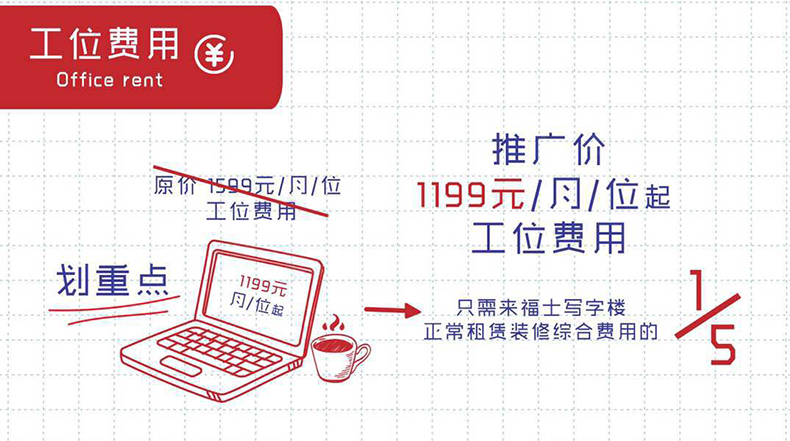 租金包含:前台服务、物管费、家具、水电、咖啡茶水、日常清洁、网络配置、打印复印、会议室
