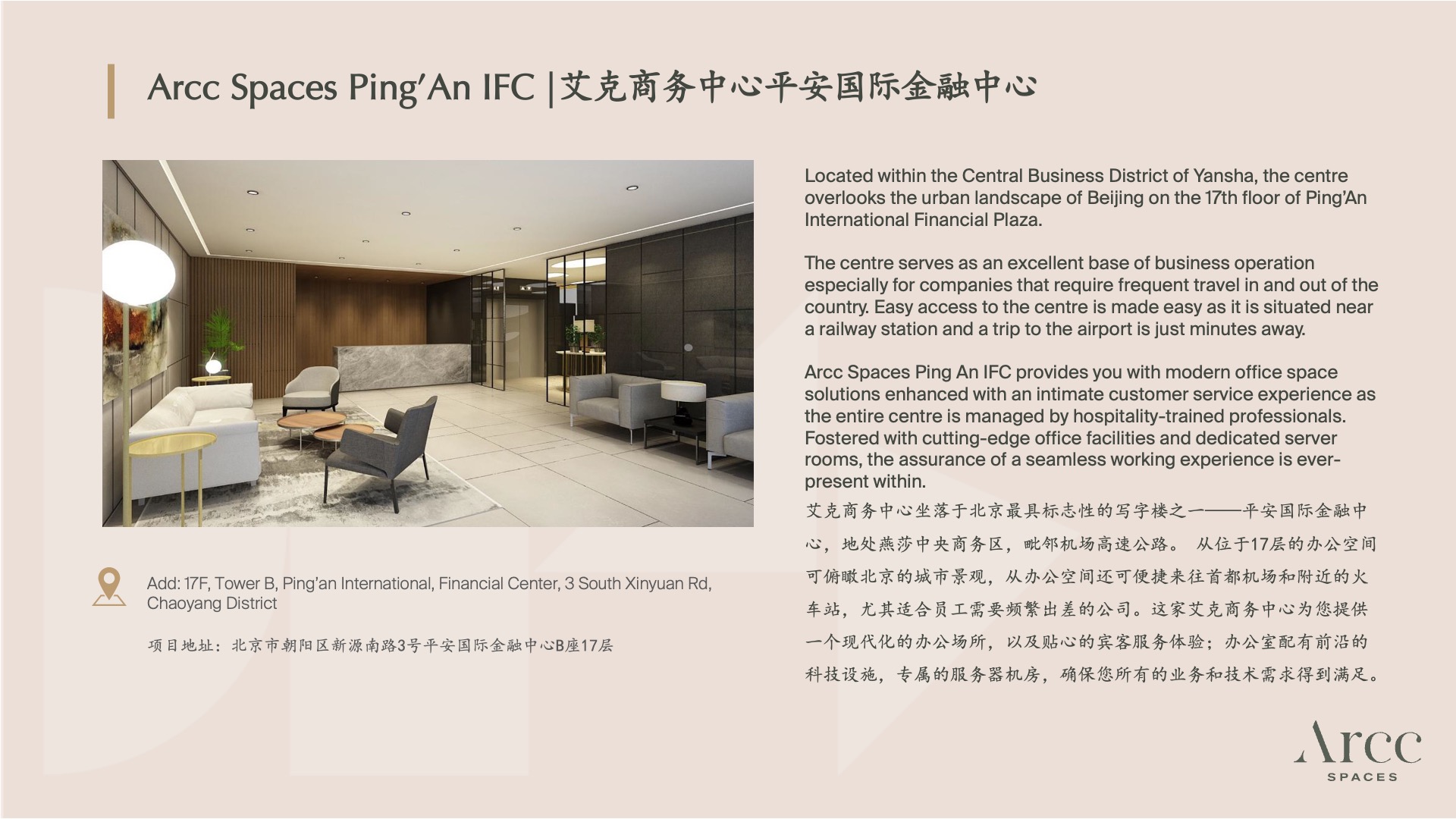 品牌介绍Arcc Spaces 艾克商务中心·北京平安国际金融中心